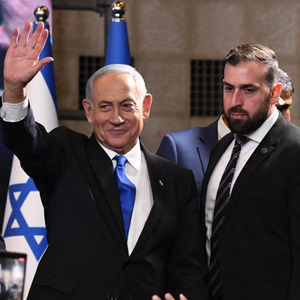 11月2日,以色列前總理內塔尼亞胡(中)在位于耶路撒冷的利庫德集團總部出席活動(dòng)。