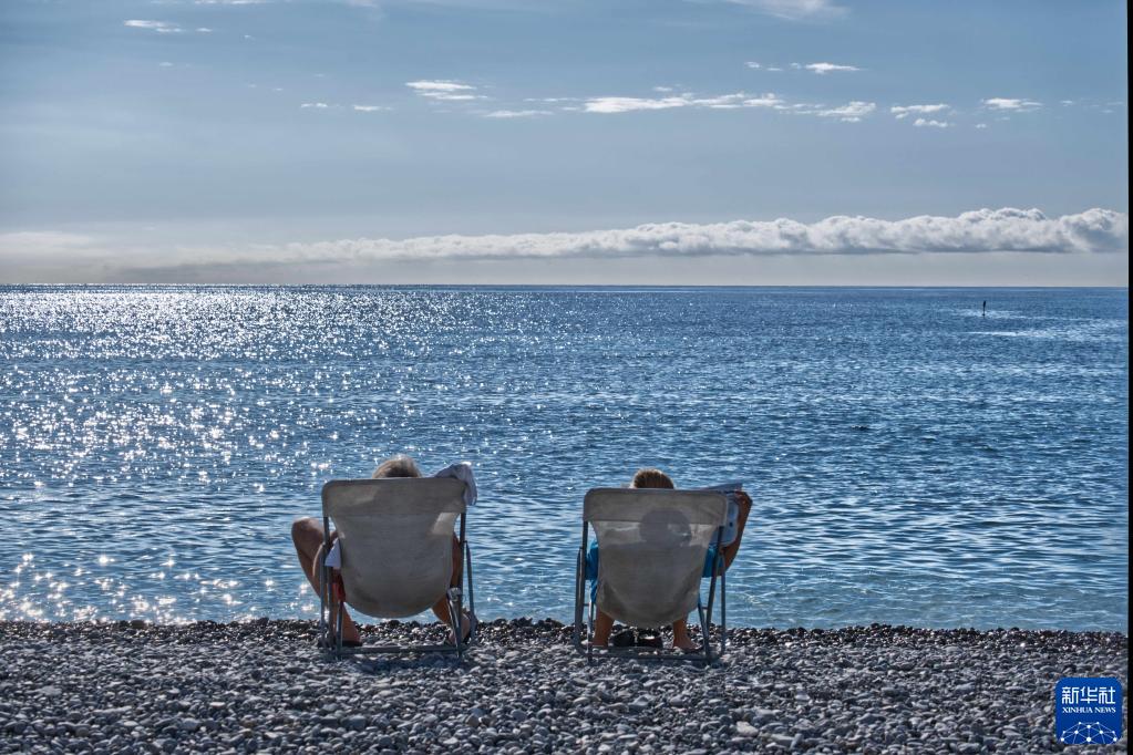 11月2日,人們在法國南部海濱城市尼斯的海邊休閑。