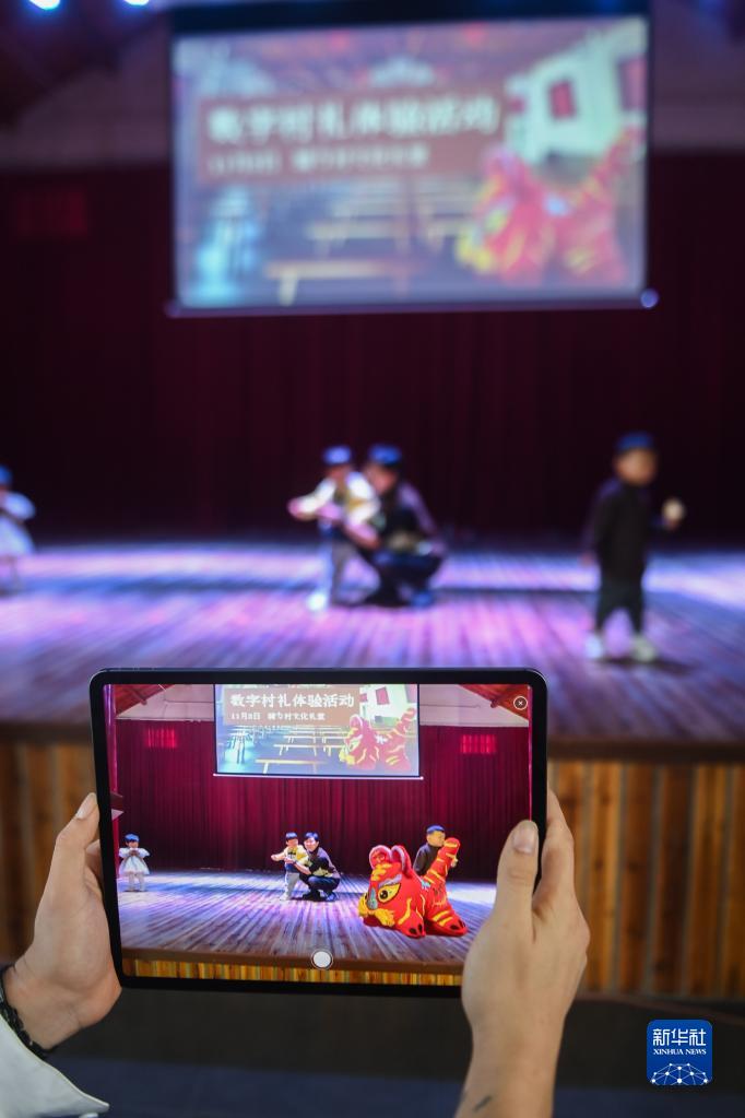 11月3日,在桐鄉市高橋街道騎力村文化禮堂里的“數字村禮體驗活動(dòng)”現場(chǎng),工作人員手持平板電腦讓村民們與虛擬布老虎“合影”。