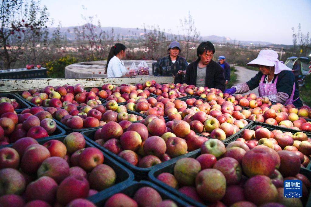 深秋時(shí)節,貴州省威寧彝族回族苗族自治縣種植的蘋(píng)果陸續收獲。果農忙著(zhù)采摘、搬運、包裝蘋(píng)果,供應市場(chǎng)。