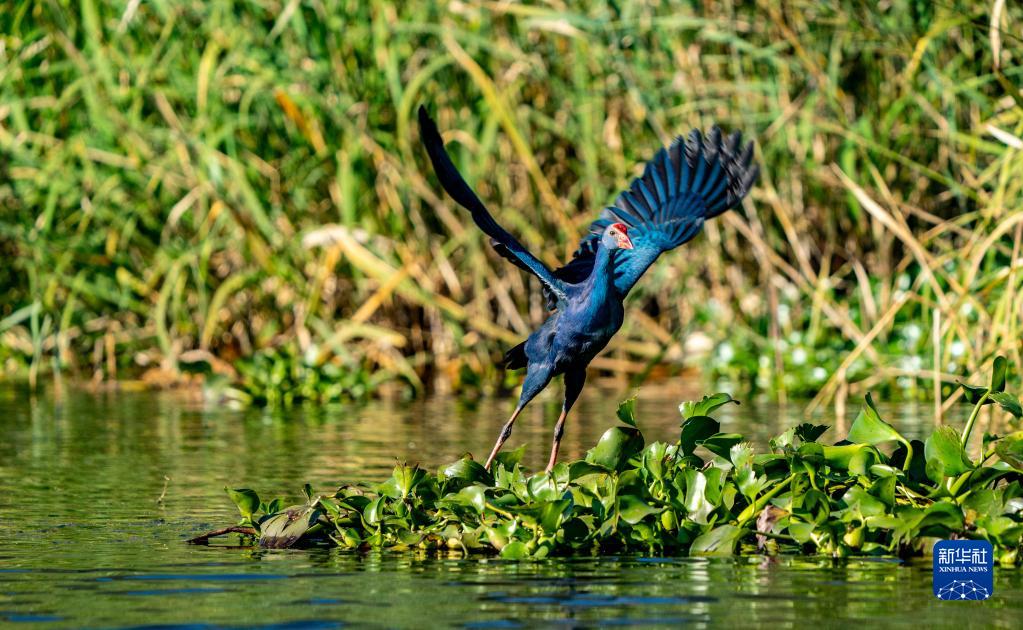 準備起飛的紫水雞(10月28日攝)。