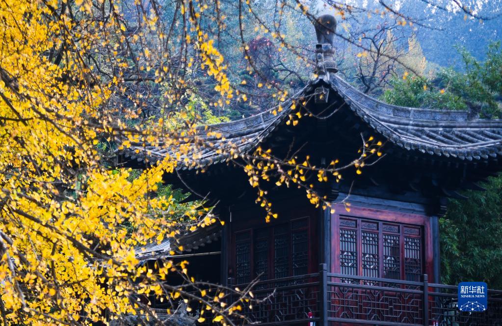 11月4日在西安市長(cháng)安區羅漢洞村終南山古觀(guān)音禪寺拍攝的秋景。