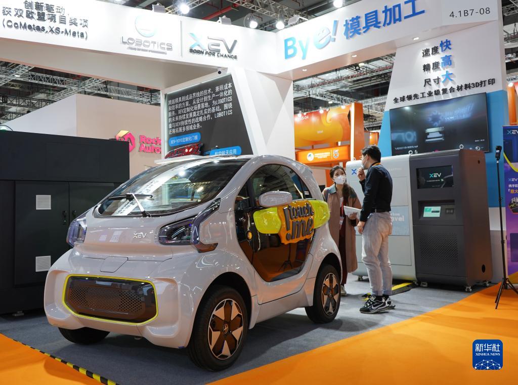 11月5日,參觀(guān)者在第五屆進(jìn)博會(huì )技術(shù)裝備展區了解XEV個(gè)性化定制新能源汽車(chē)。