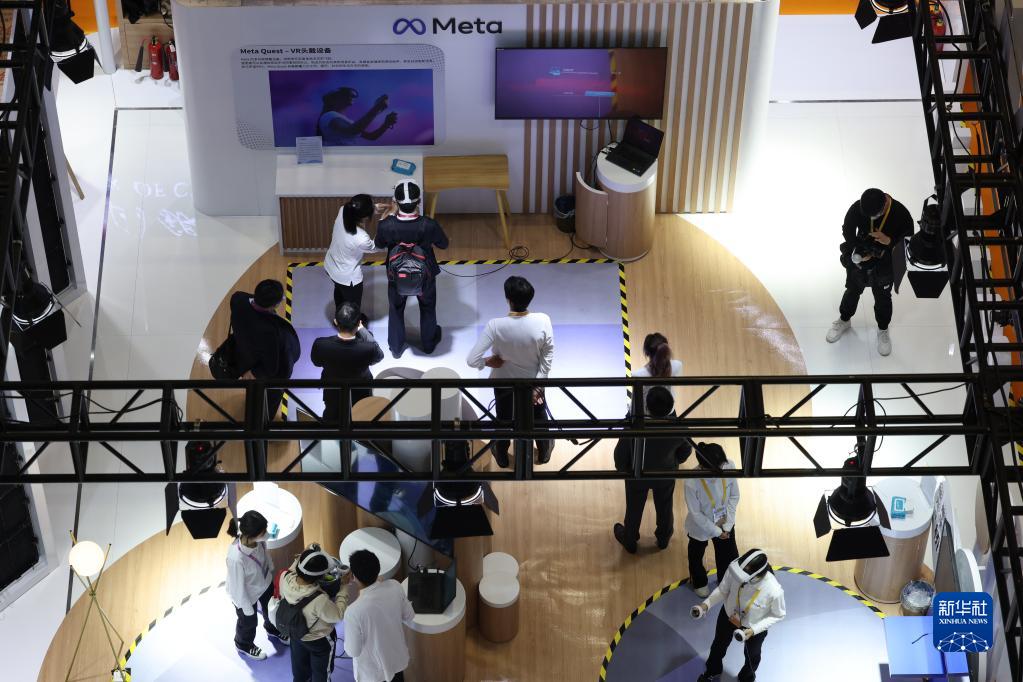 11月5日,參觀(guān)者在第五屆進(jìn)博會(huì )人工智能專(zhuān)區體驗“元宇宙”應用。