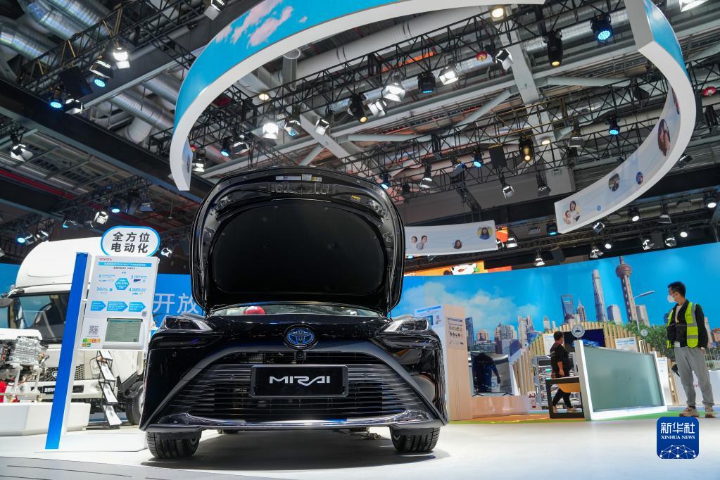 11月5日在第五屆進(jìn)博會(huì )汽車(chē)展區拍攝的豐田氫燃料電池車(chē)。