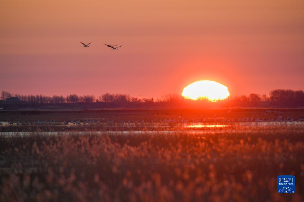 11月4日,候鳥(niǎo)從吉林省白城市鎮賚縣莫莫格國家級自然保護區上空飛過(guò)。