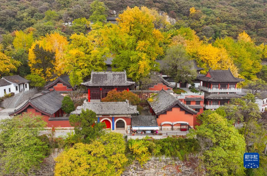 這是10月30日在江蘇省連云港市花果山三元宮拍攝的秋景(無(wú)人機照片)。 新華社發(fā)(王健民 攝)