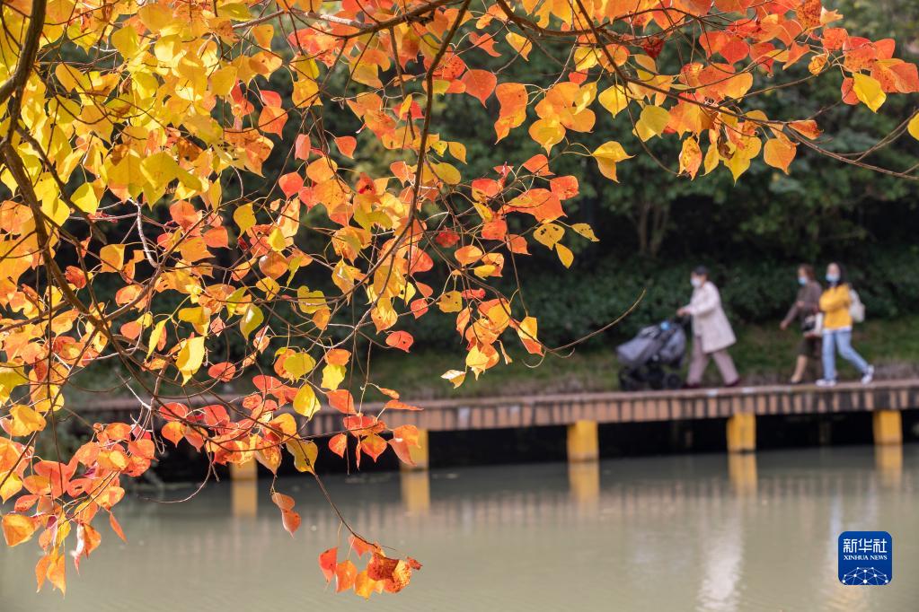10月30日,市民在江蘇省揚州市宋夾城體育休閑公園內漫步賞秋。 新華社發(fā)(齊立廣 攝)