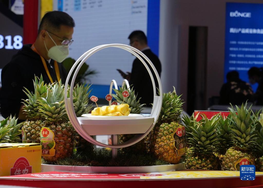 11月5日在第五屆進(jìn)博會(huì )食品及農產(chǎn)品展區拍攝的菲律賓黑鉆鳳梨。