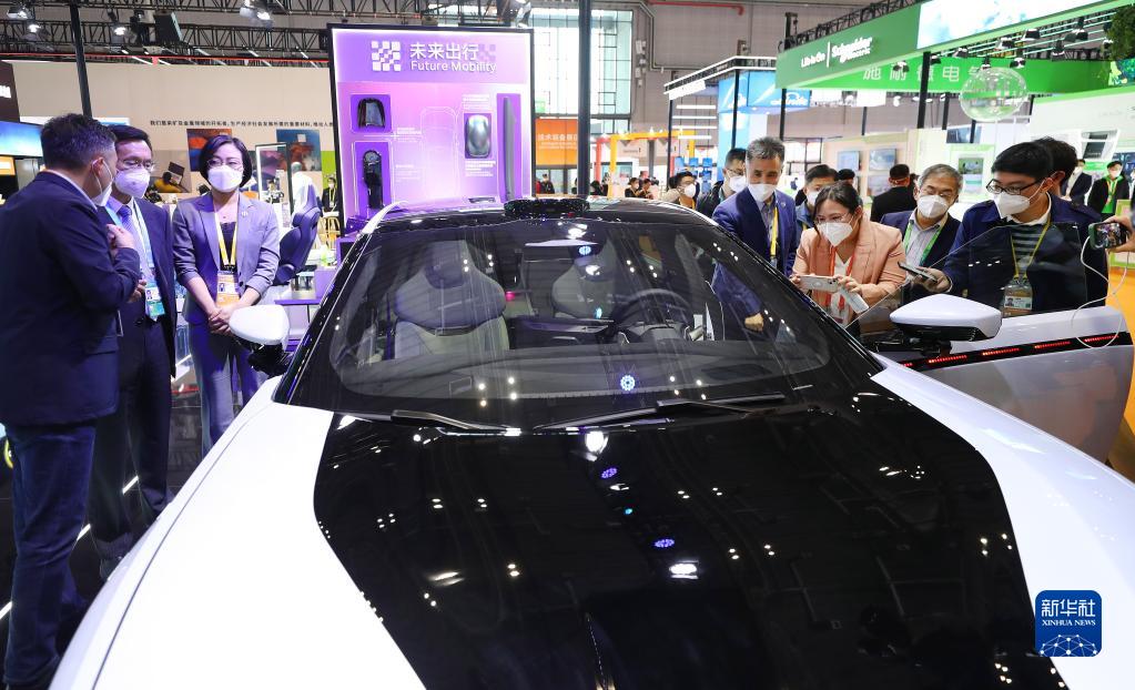 11月5日,參觀(guān)者在第五屆進(jìn)博會(huì )技術(shù)裝備展區的電動(dòng)車(chē)前交流。