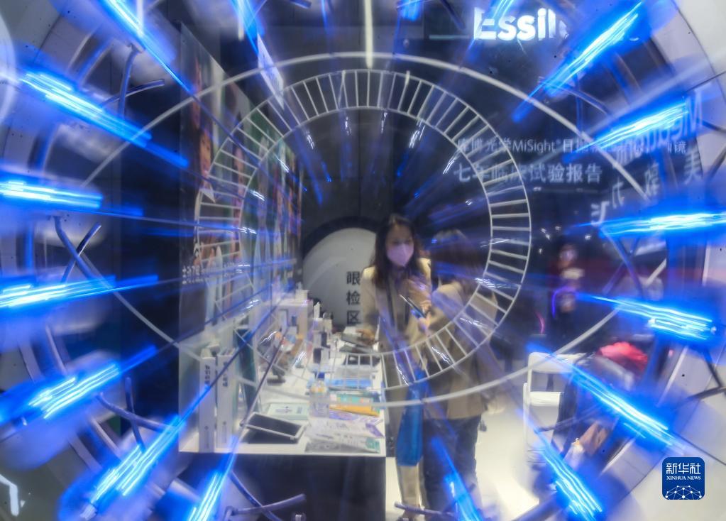 11月6日,參觀(guān)者在第五屆進(jìn)博會(huì )醫療器械及醫藥保健展區依視路陸遜梯卡展臺參觀(guān)。