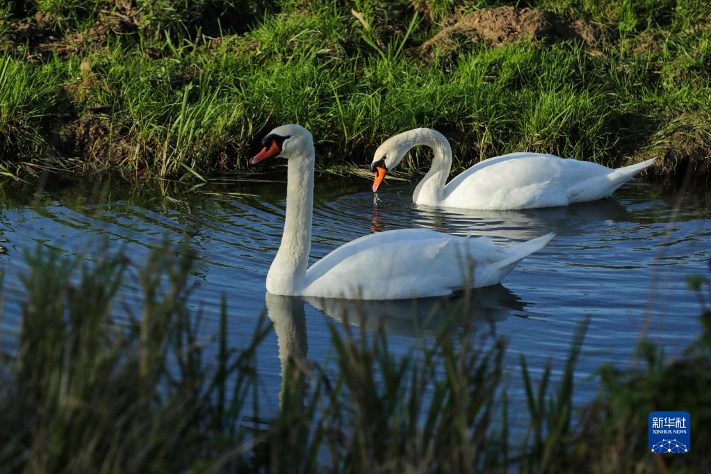 在荷蘭多德雷赫特,天鵝在比斯博斯國家公園的水面上游弋(11月2日攝)。