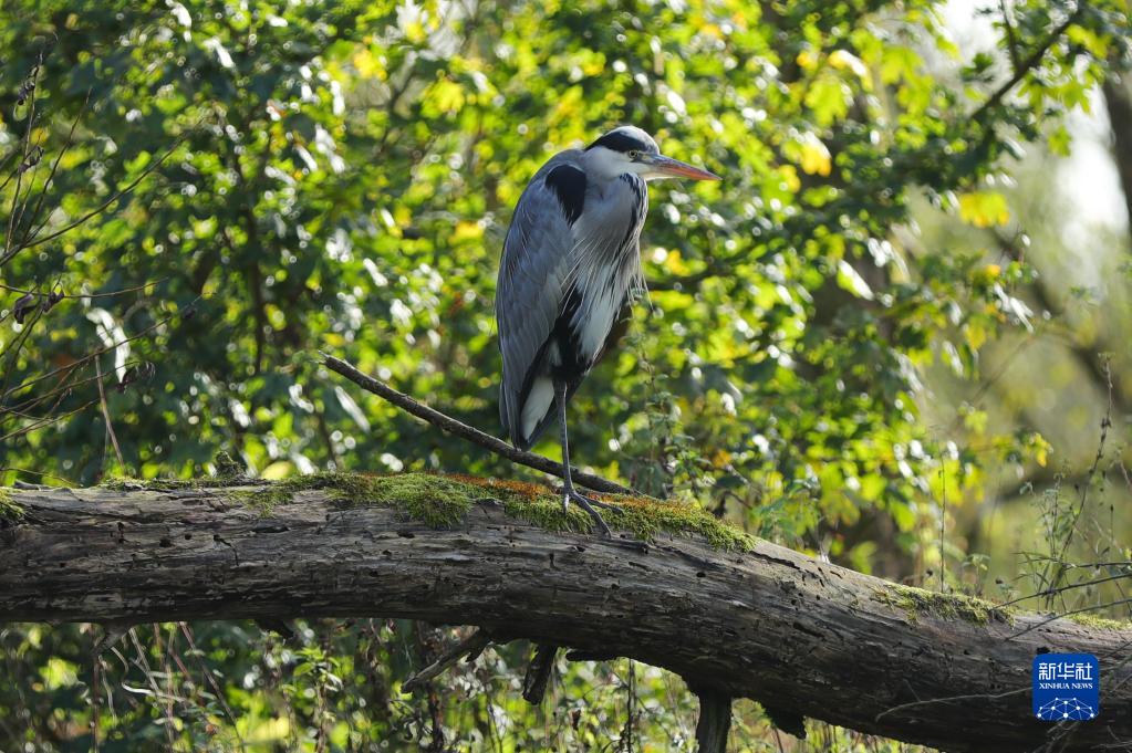 在荷蘭多德雷赫特,一只蒼鷺站在比斯博斯國家公園的樹(shù)枝上(11月2日攝)。