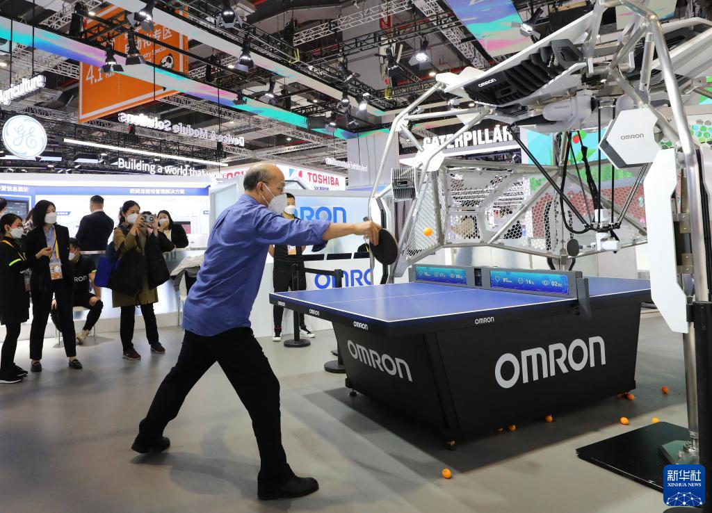 11月6日,參觀(guān)者在第五屆進(jìn)博會(huì )歐姆龍公司展臺與乒乓球機器人互動(dòng)。歐姆龍公司連續參加五屆進(jìn)博會(huì ),本屆進(jìn)博會(huì )上展出的乒乓球機器人是該系列的第七代產(chǎn)品。
