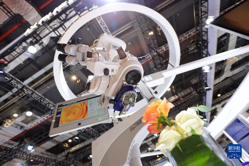 11月6日在第五屆進(jìn)博會(huì )蔡司展臺拍攝的眼科導航手術(shù)顯微鏡。