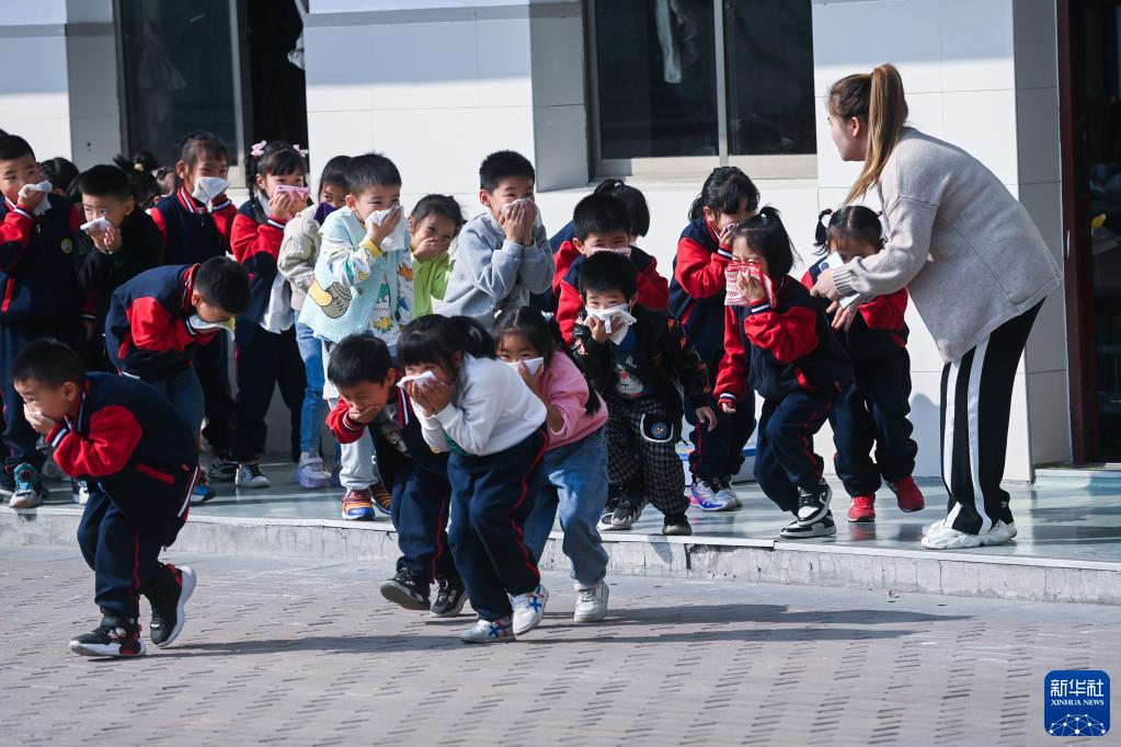11月8日,東林小學(xué)的學(xué)生們在老師的帶領(lǐng)下進(jìn)行火災疏散逃生演練。