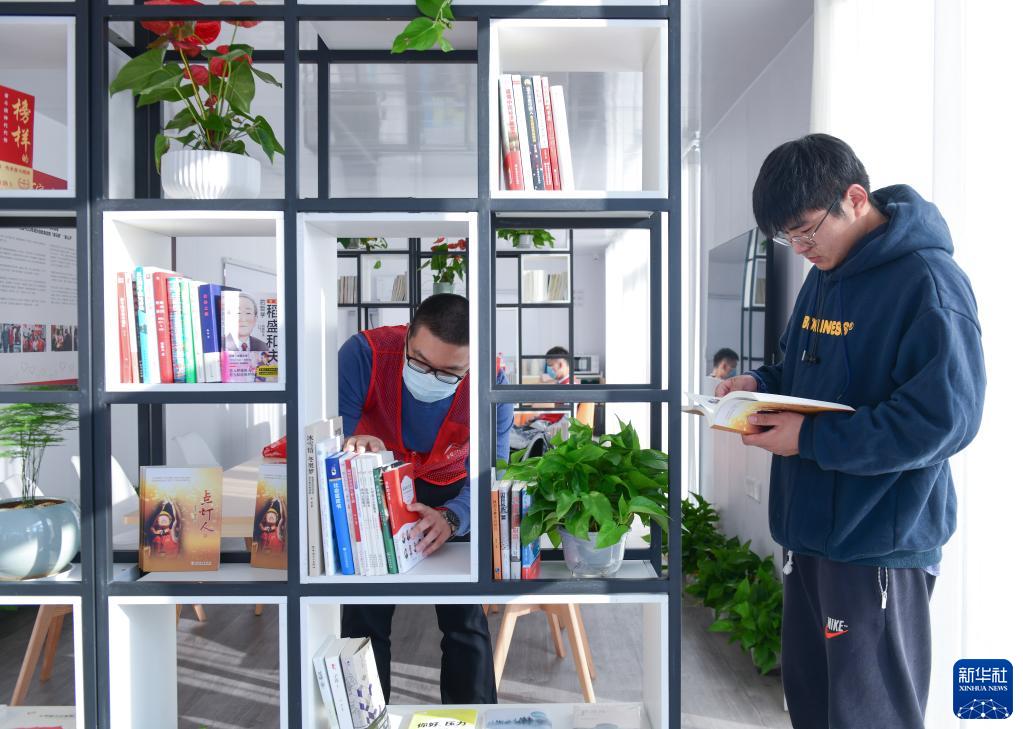 11月8日,在“時(shí)代楷?!卞X(qián)海軍勞模服務(wù)站,居民在閱讀圖書(shū)。