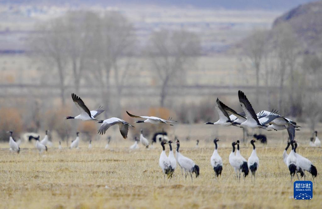 新華全媒+丨拉薩林周:黑頸鶴越冬