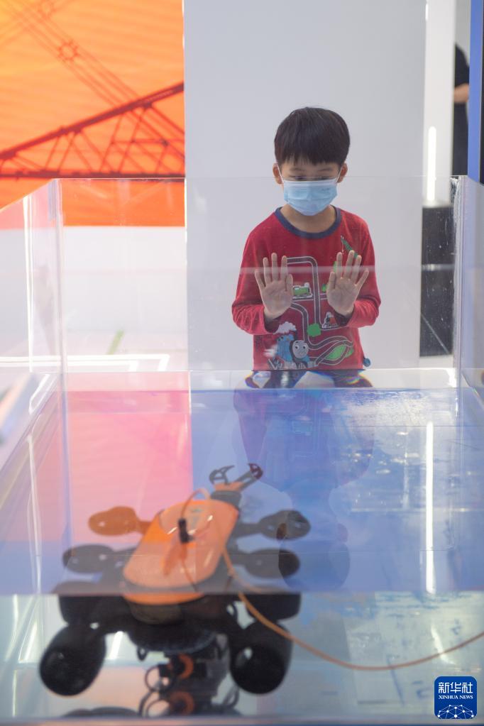 11月8日,小朋友在國家電網(wǎng)展臺參觀(guān)水下機器人。