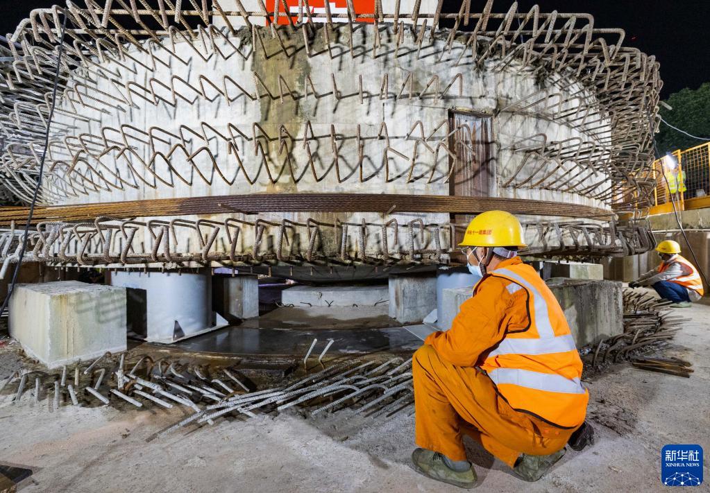 11月8日,施工人員在清遠磁浮旅游專(zhuān)線(xiàn)長(cháng)隆特大橋跨京廣鐵路連續梁轉體現場(chǎng)作業(yè)。
