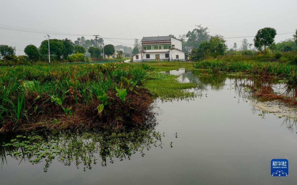 11月8日拍攝的重慶市梁平區禮讓鎮川西漁村池塘濕地。