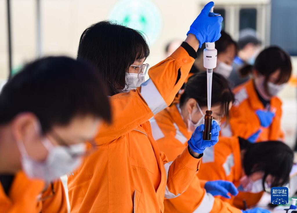 11月9日,在四川省宜賓市敘州區,演練人員進(jìn)行相關(guān)應急監測實(shí)驗分析工作。