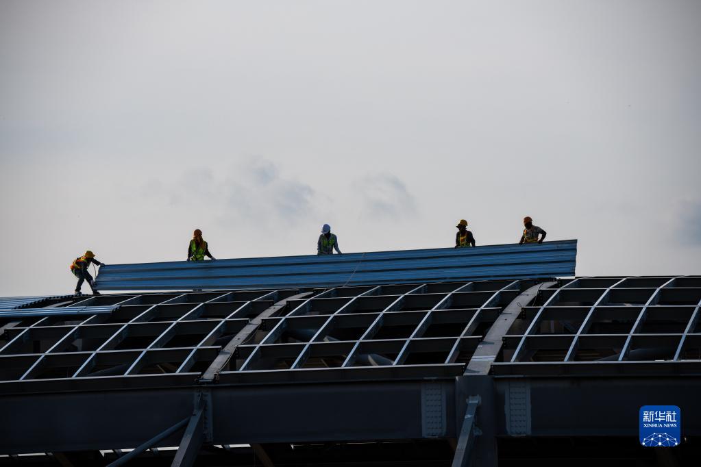 11月8日,工人在柬埔寨新金邊國際機場(chǎng)項目施工現場(chǎng)工作。