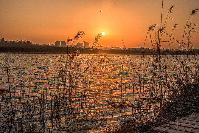 ??? 蘆葦,漣漪,山與城的剪影,斜掛半空的夕陽(yáng),以及漫天和滿(mǎn)河的金光,當然還有微風(fēng),以及此刻端詳著(zhù)“母親河”的你。
