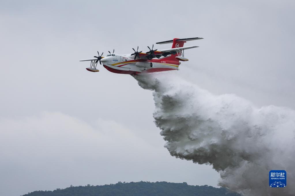 大型水陸兩棲飛機AG600M在第十四屆中國航展進(jìn)行飛行投水演示(11月8日攝)。