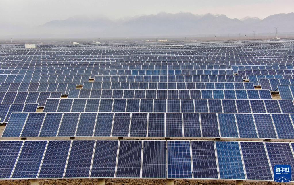 新疆哈密石城子光伏產(chǎn)業(yè)園一角(11月10日攝,無(wú)人機照片)。