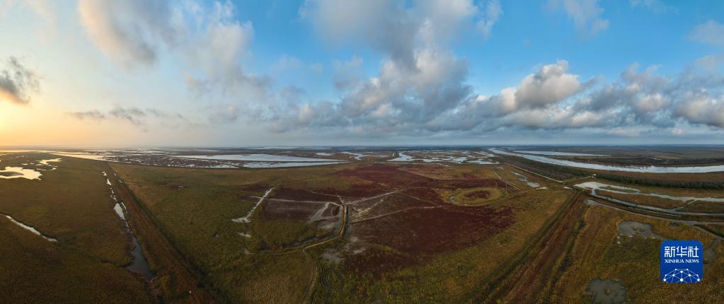鹽城濕地珍禽國家級自然保護區景色(11月8日攝,無(wú)人機照片)。