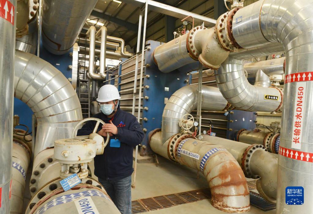 11月10日,在石家莊市一家供熱企業(yè),工作人員在運行車(chē)間內調控設備。