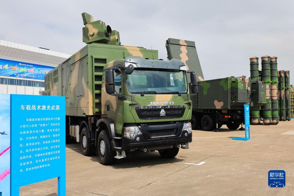 用于攔截小型無(wú)人機等“低慢小”目標的車(chē)載戰術(shù)激光武器系統亮相航展(11月9日攝)。