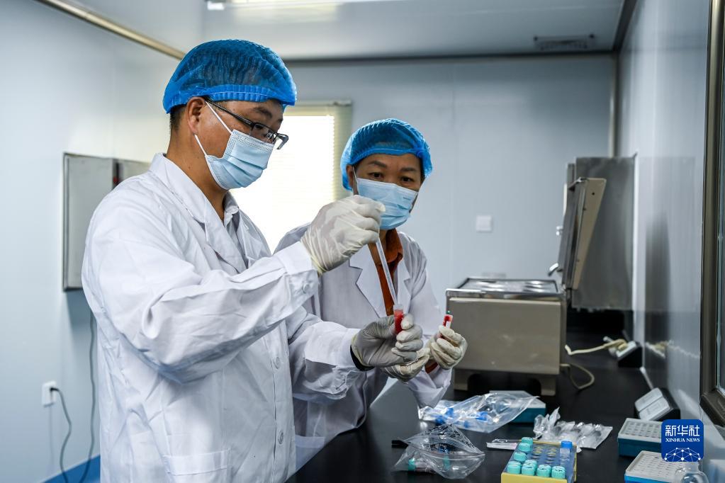 11月10日,在興業(yè)縣農業(yè)農村局實(shí)驗室,科技特派員對采集的禽類(lèi)血液樣本進(jìn)行化驗。