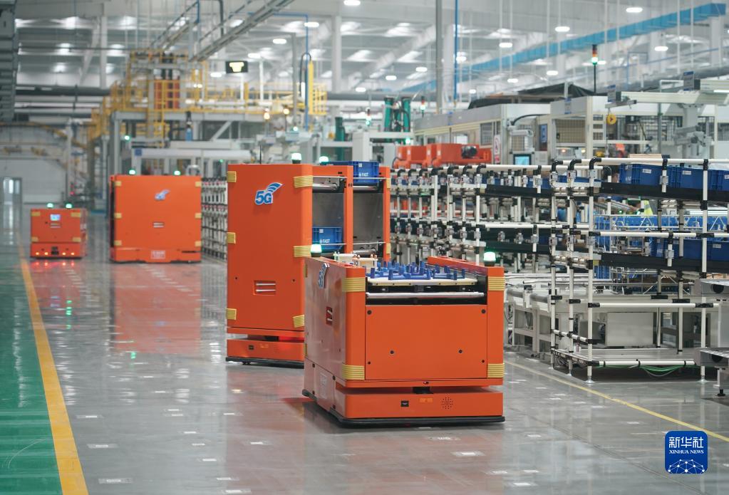 11月9日,智能搬運機器人在位于西安高新區的法士特高智新工廠(chǎng)項目車(chē)間內運輸物料。