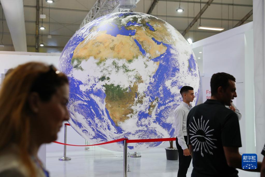 11月10日,在埃及沙姆沙伊赫的聯(lián)合國氣候變化大會(huì )展區內,參會(huì )者走過(guò)一個(gè)地球模型。