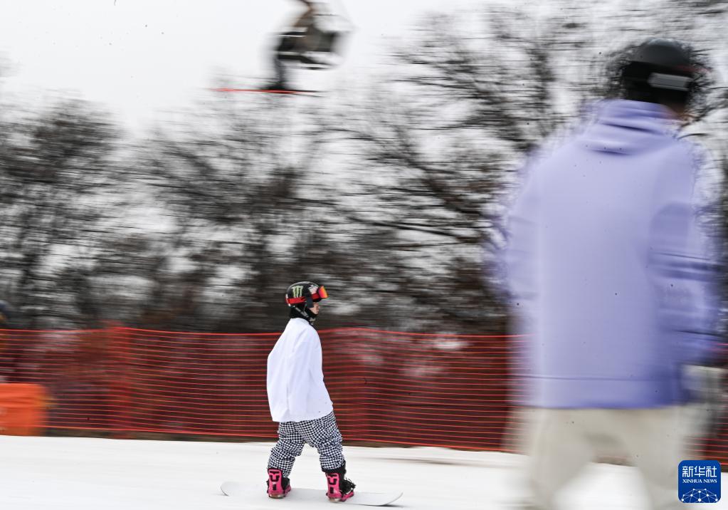 11月11日,滑雪愛(ài)好者在廟香山滑雪場(chǎng)滑雪。