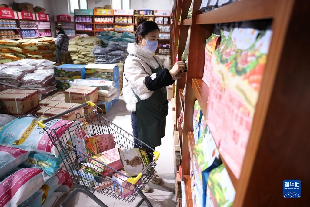 11月11日,在邢臺市南和區和陽(yáng)鎮一家寵物電商企業(yè),工作人員在給客戶(hù)選配寵物食品。