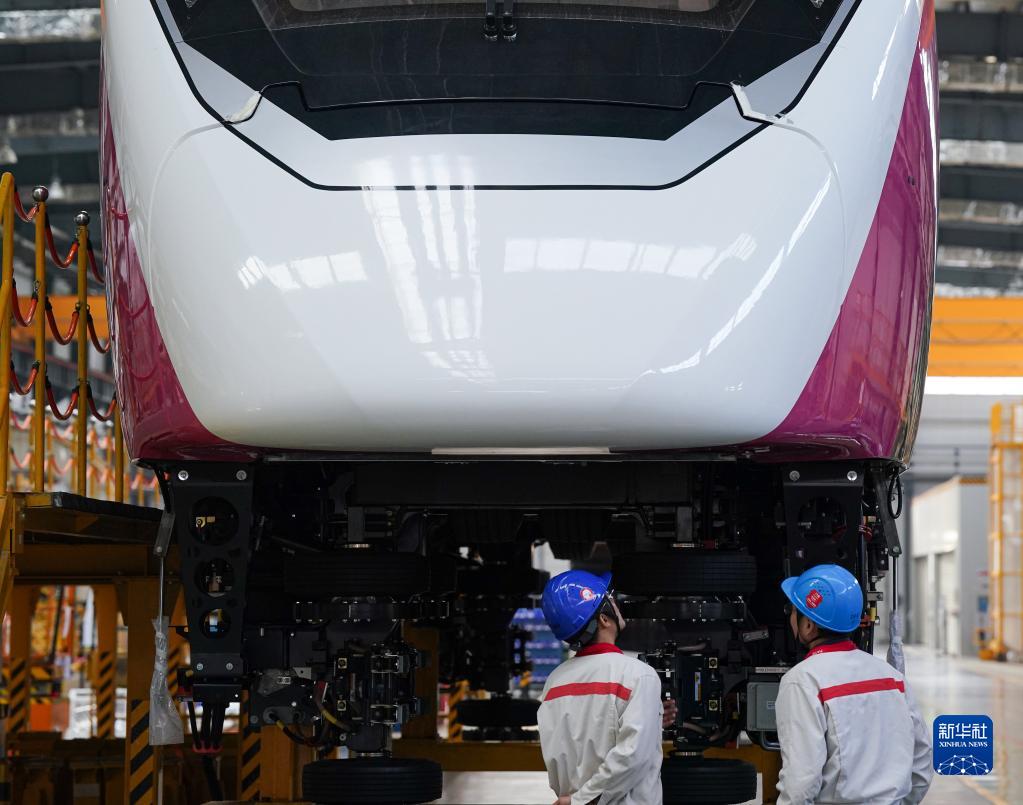 11月9日,中車(chē)浦鎮阿爾斯通運輸系統有限公司工人在軌道交通車(chē)輛生產(chǎn)線(xiàn)上工作。