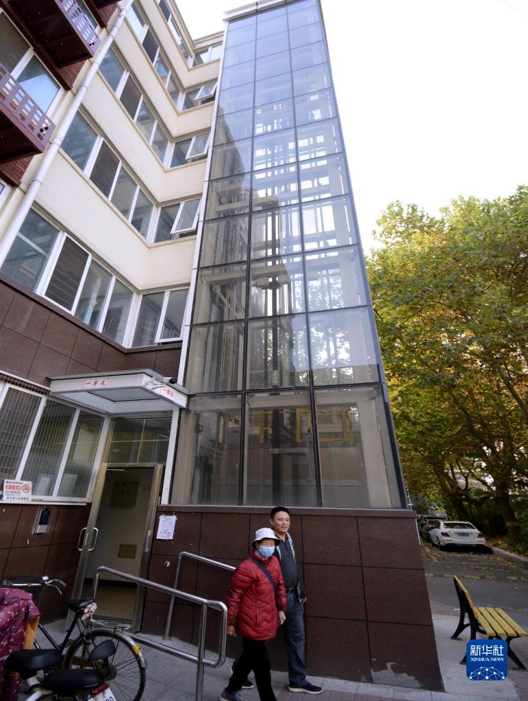 這是北京市豐臺區蓮花池西里6號院一棟居民樓加裝的外掛式電梯(11月10日攝)。