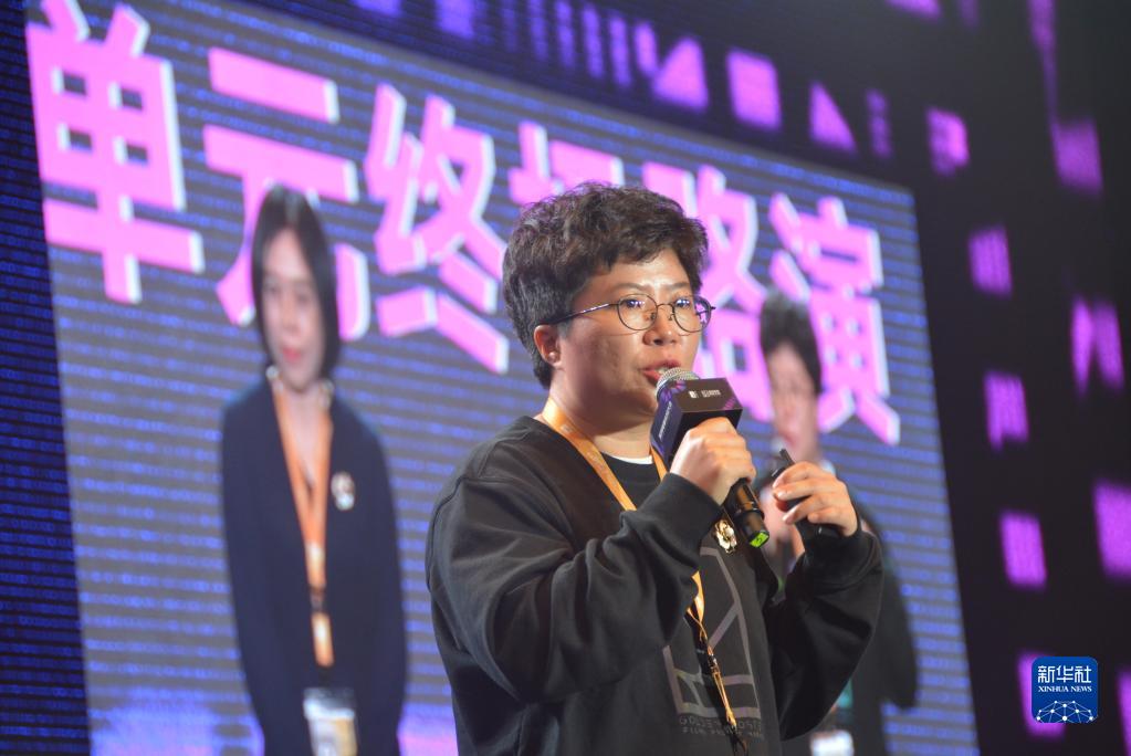 11月10日,青年導演袁媛在金雞電影創(chuàng )投大會(huì )現場(chǎng)介紹自己帶來(lái)的創(chuàng )意項目《親愛(ài)的美英》。