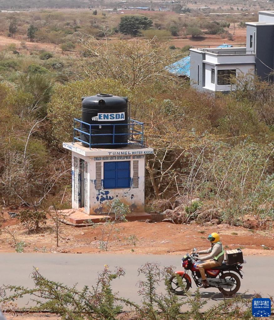 11月10日,在肯尼亞基姆卡,一名男子騎摩托車(chē)從寫(xiě)有“隧道水”字樣的儲水罐旁經(jīng)過(guò)。