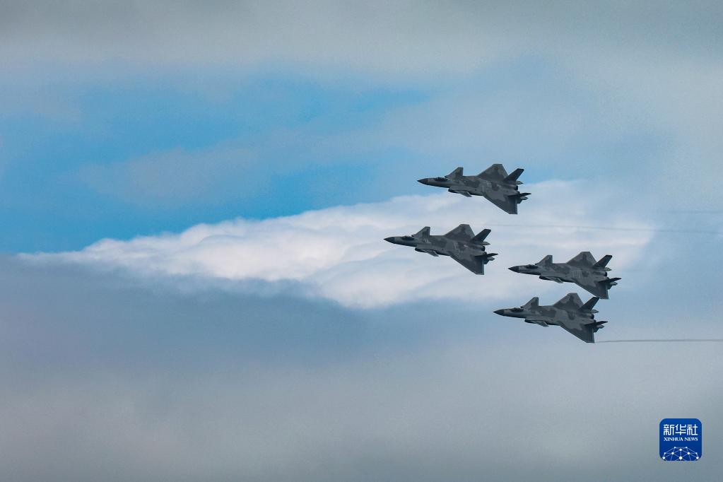 11月11日,殲-20戰機四機編隊在第十四屆中國航展上進(jìn)行飛行展示。