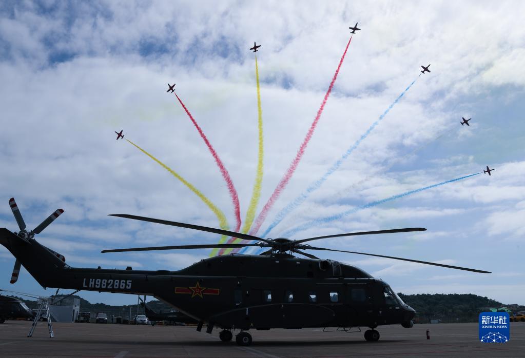 11月11日,空軍航空大學(xué)“紅鷹”飛行表演隊在第十四屆中國航展上進(jìn)行飛行表演。