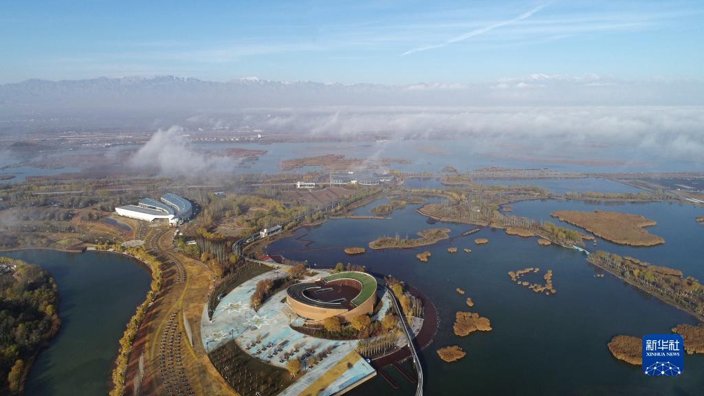 當日,“塞上湖城”寧夏銀川上空出現平流霧景觀(guān),宛若仙境。