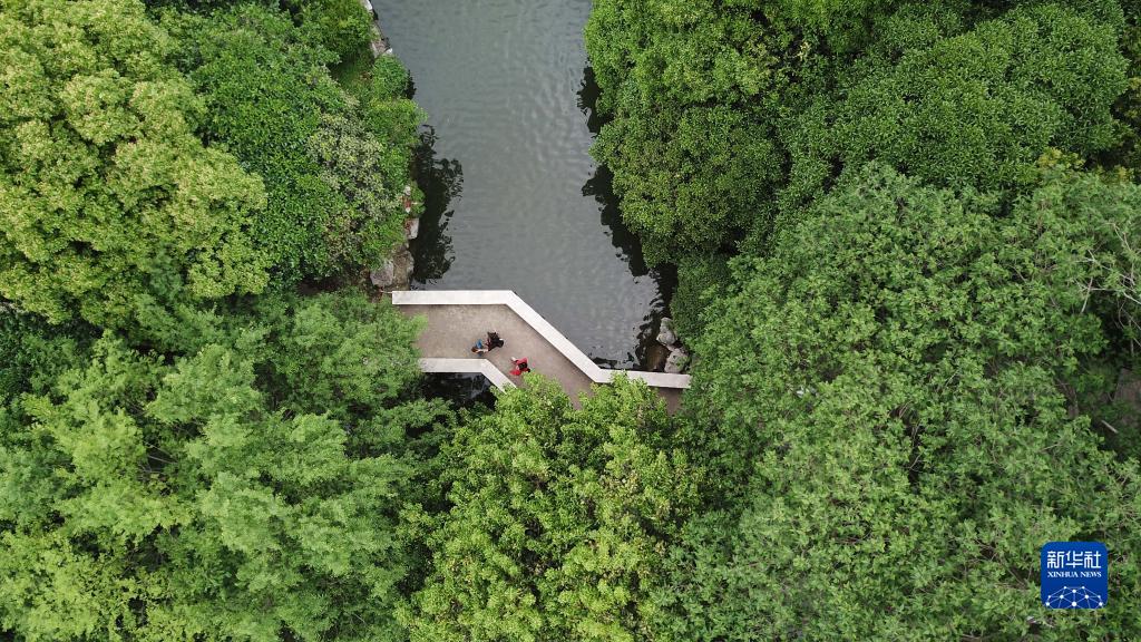 2021年5月5日,市民在合肥市環(huán)城公園散步(無(wú)人機照片)。