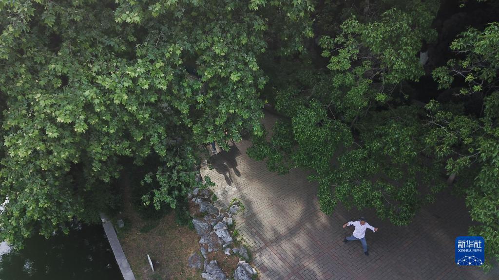 2021年5月5日,市民在合肥市環(huán)城公園健身(無(wú)人機照片)。