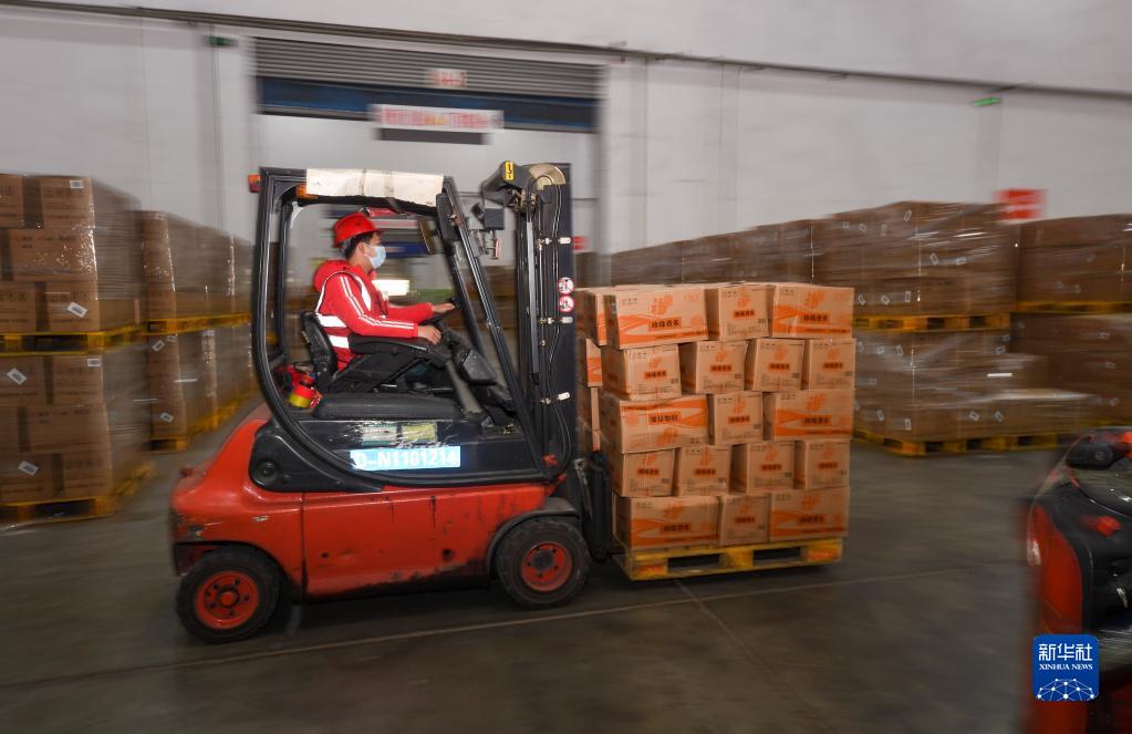 11月12日,在位于渝北區的重慶慶榮物流有限公司,工作人員在商品分揀倉作業(yè)。