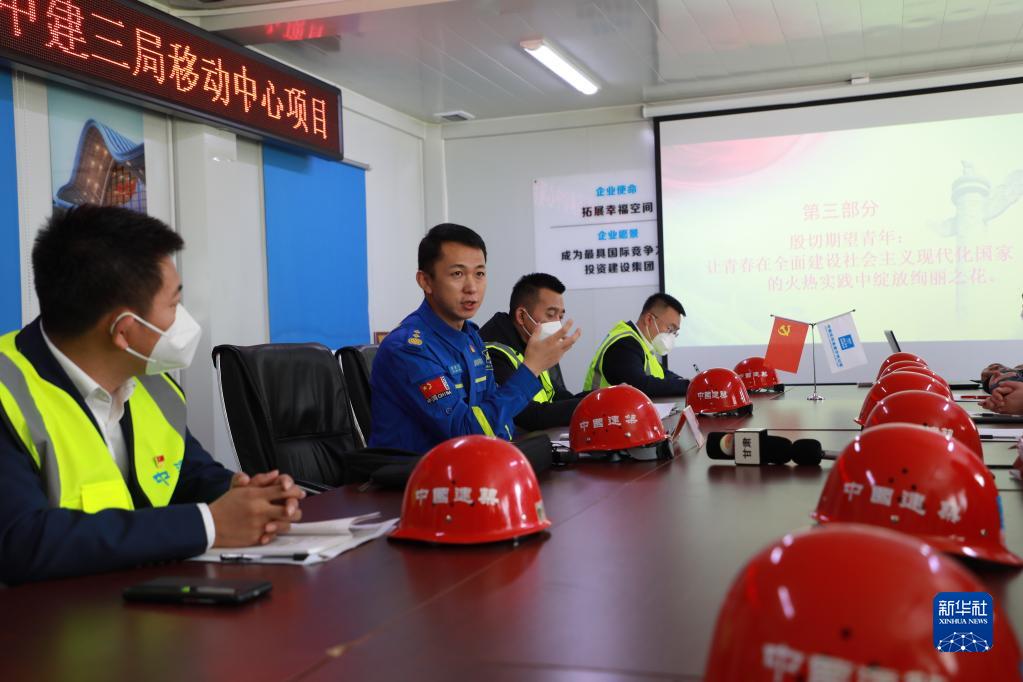 11月6日,於若飛在中建三局西北公司甘肅分公司承建工程現場(chǎng)宣講黨的二十大精神。