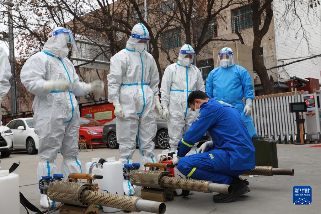 11月11日,在蘭州市城關(guān)區廣武門(mén)街道南城根社區,於若飛為隊員檢查消殺工具。